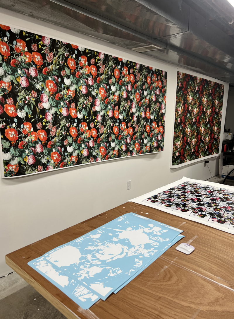 Much of the source imagery for my work comes from a time in history when flowers were sold at exorbitant prices and became symbols of a classist culture. My work also references the Pattern and Decoration movement, which emerged in the mid-1970s and championed decorative and craft-based aesthetics as equal to figuration, minimalism, and conceptualism in art.