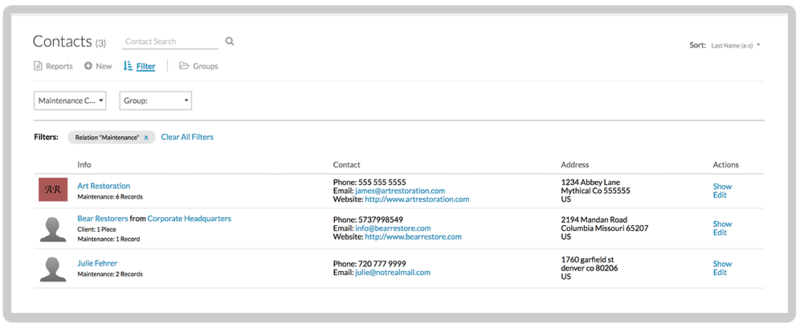 Then you can add in important contacts so you have the details of your artists, appraisers, lawyers, curators, gallery owners, conservators, all in one place. That way you can access them anytime, anywhere as well as connect them to specific pieces within your collection. You can keep them updated by sharing key documents or reports directly from your account.