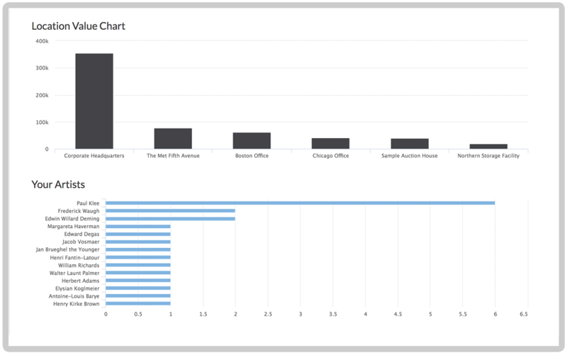 You’ll have the location at the ready if a colleague, family member or estate planning attorney needs the information. You’ll also be able to see the spread of your investment in the Insights tool where the purchase and market values of each work, along with their locations, are outlined for you to review at a glance.