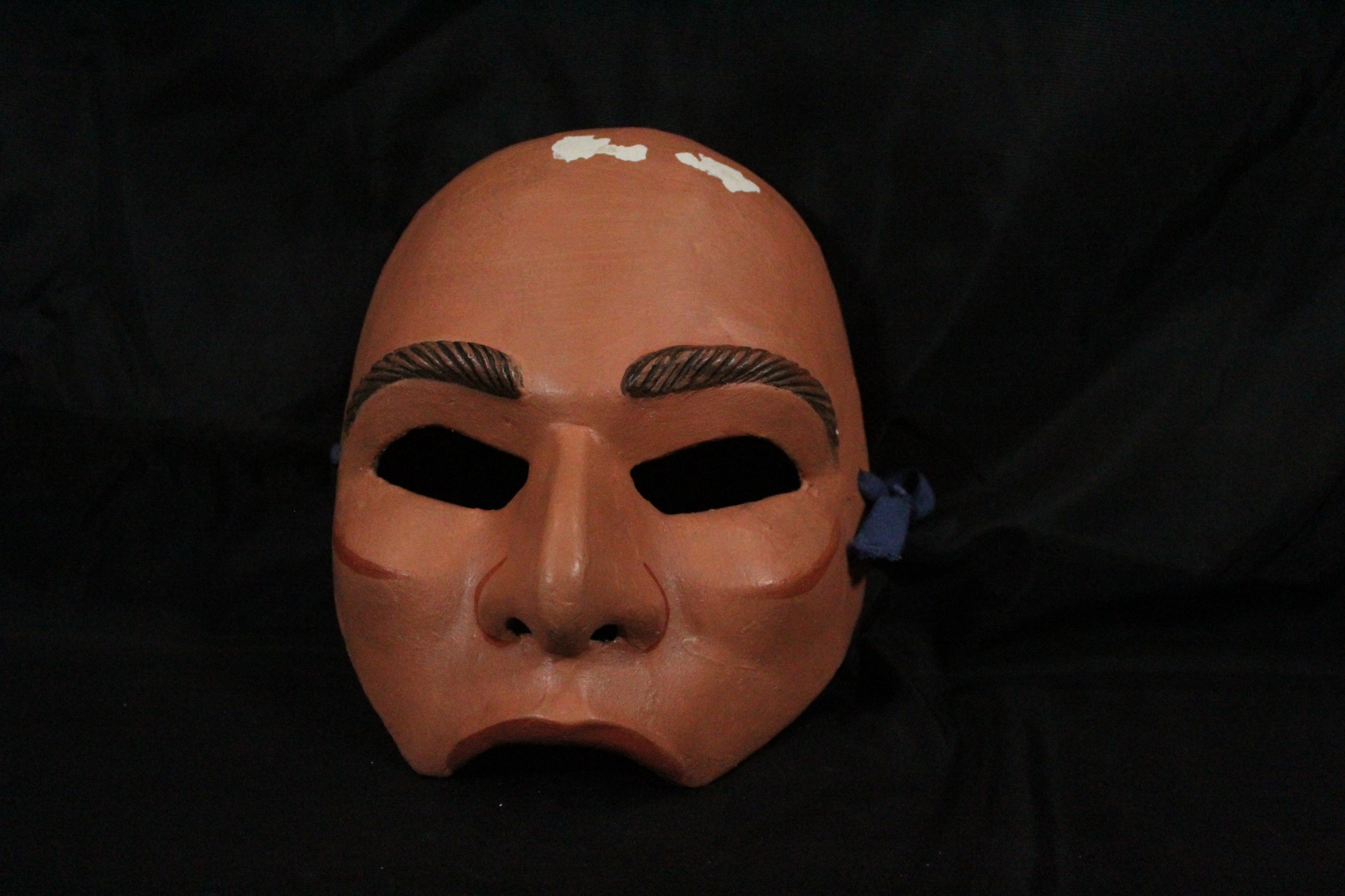 Refugee Andrea. Plaster bandage, paper clay, painted with acrylics. Half mask. Part of the Sun Serpent Series.