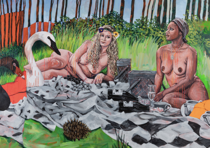 For the past several years, I’ve focused on depicting young women in the liminal state between adolescence and adulthood. The aspirations and tensions during that transitional stage are intense, and remnants remain throughout our lives. I place these figures in semi-imaginary realms, often weaving together bucolic imagery with an urban vernacular to heighten the sense of a world off-kilter.